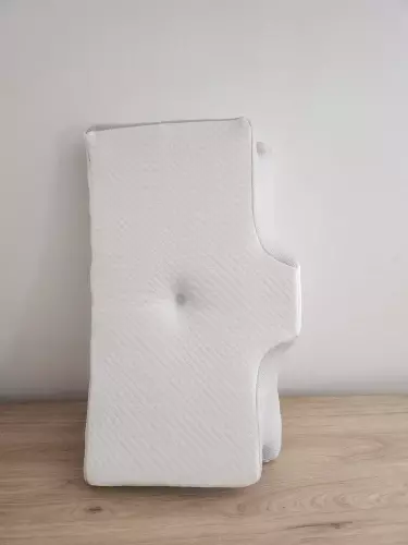 Dopiero ta poduszka zrobiła różnicę. Jej nietypowy kształt z centralnym wgłębieniem sprawia, że głowa pozostaje w stabilnej pozycji, a szyja jest prawidłowo podparta. Dzięki temu nie ma już ucisku ani skręcania ramion w nocy.